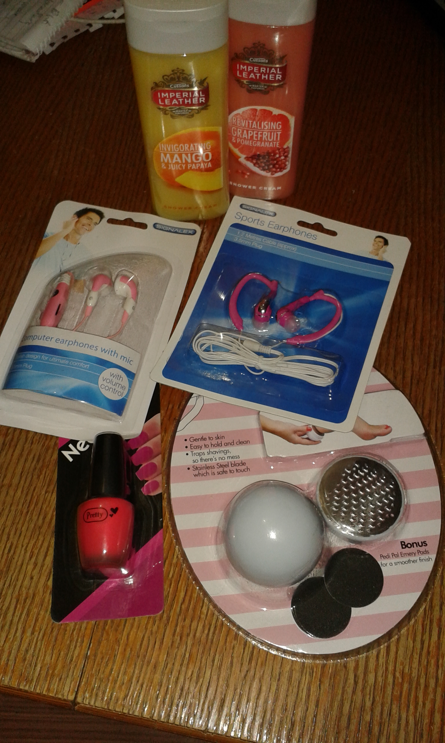 he doesn’t know yet that just isn’t cool. But I love them all. Although he maybe hinting…2 shower gels, foot scourer, nail varnish…