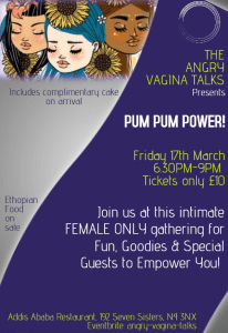 The Angry Vagina Talks is a platform which connects women with empowering talks on female health, wellbeing and entertainment. The platform promotes female businesses, entrepreneurism, empowerment, creativity, fitness, health and wellbeing. As well as providing charity support via our raffle with 100% of donations supporting a female centred charity, previously supporting, Women’s aid, Refuge, Women’s International.