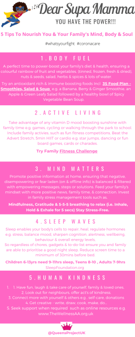 Watch our 10minute ‘No Filter Mum Convo’s on our YouTube Channel from everyday Mums who share some of their challenges honestly and openly, as well as their businesses endeavours and tips to help other mums juggle health, wellbeing, life balance and sanity! Oh and whether they prefer Anthony Joshua or Idris Elba (yes we also have a laugh:).
